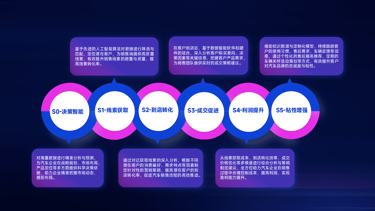 通过拓宽潜在客户来源、、、优化线索分配并提高到店转化率,,,,以增强销售效率。。。同时,,利用线索数据不断优化分析模型,,有效提升转化率,,,扩大营销影响力。。。。